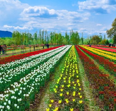 Spring transforms Kashmir into a colorful paradise. Tulip gardens bloom and the valley becomes vibrant.