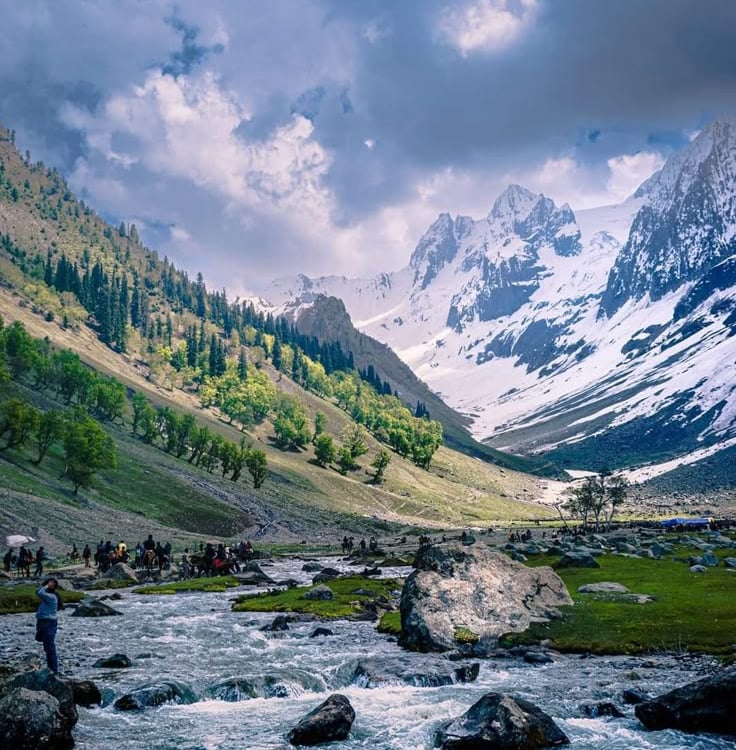 The lush valleys of Pahalgam provide the perfect setting for romantic moments.